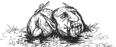 Valkens första svepande slag med klubban träffar Botulw i sidan. Revben knäcks och hans lungor töms på luft. Kraften i slaget kastar Botulw åt sidan och får honom att rulla ut i mörkret i utkanten av lägerplatsen. Gasko lyckas efter ett par våldsamma missar träffa den hoppande och fintande Tilindil, som viks dubbel och faller ihop. Striden tar en annan vändning då Block Barbaren ingriper. Valken får helt ägna sig åt den muskulöse barbaren och hans mäktiga svärd medan Gasko och Irmelin har en envig på andra sidan lägerelden. Gnistrande snabba stick från Irmelins klinga och mäktiga svepande hugg från Blocks svärd driver trollen bakåt. Både Block och Irmelin träffas av trollens klubbor men till slut fäller Block Valken, varefter Irmelin och Block tillsammans nedgör Gasko. Valken ligger död i en svart blodpöl och Gasko rullar fram och tillbaka i plågor, tills Block gör slut på hans lidande.