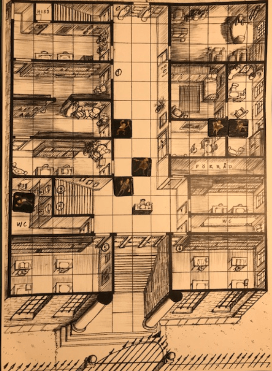 Vad hade gått fel? Jag tillsatte en Carlylekommission och lät den jobba i tre år och den kom fram till att det var mitt scenario som var felkonstruerat. Det var tänkt att sätta press på de som genomsökte genom att det hela tiden fanns en risk att någon skulle komma ut och upptäcka tillslaget. Kombinationen av att jag satte procentsatsen för att gubbar skulle komma ut i korridoren för högt och att Biff och Errol utan skrupler knockade varenda gubbe som visade sig, gjorde att detta blev hela kampanjens mest farsartade scen. Det var kul men lite för fånigt för Cthulhu-känslan.