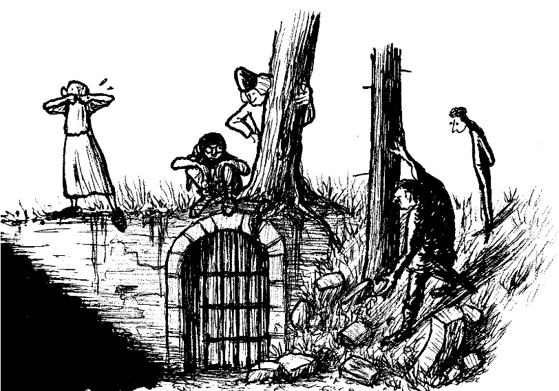 Efter att ha bänt och bräckt upp den gistna gamla porten lyser dagsljuset för första gången på sextio år in i den hemliga gången. Tyvärr lyser det upp en dyster syn. Tio meter in har gången rasat.