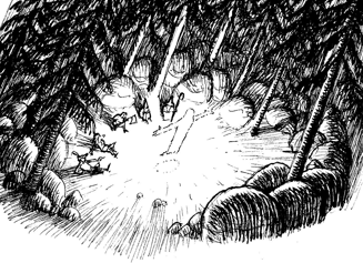 Vodomar Stigman, självutnämnd ledare för gruppen, tar till orda: -”Hur vi än gör bör vi ta oss till Faltrax, där kan vi fylla på våra förråd och lägga upp planerna.” Då solen stiger över höga Faradamm anträder äventyrarna marschen. De som marscherar är…