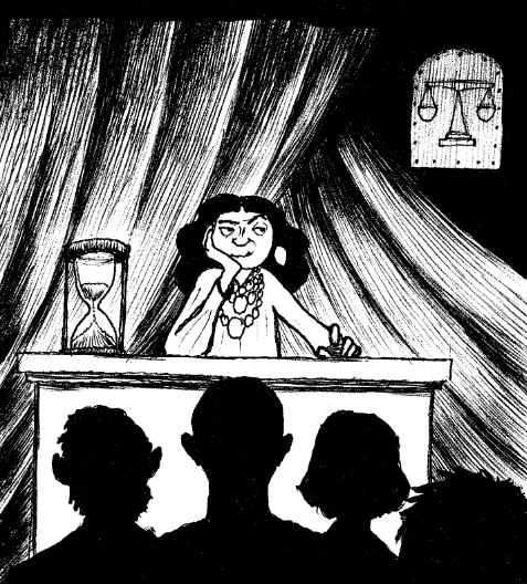 Cerands stora domtält står några dyner bort från den egentliga staden. Medan man klängt och klättrat, bråkat och blivit ormstungna uppe på Hertig Slagfalk, har rättegången fortsatt nere i Cerand – inte ens stadsbranden har avbrutit den. När vi sist tittade in i domtältet hade kapten Kasr just krävt att rättegången skulle avbrytas eftersom domaren Esther, i egenskap av klanlös, inte hade rätt att döma en Detwachisk luftofficer. Tumultet tilltog då man förde in den ende överlevande från den hemska ökenlurvolycka som drabbat stadens profeter. När vi nu åter gläntar på tältfliken till domtältet ser vi att profeten ligger och sover bland kuddar och filtar, med en tom flaska fikonvin bredvid sig. Den stolte Kapten Kasr vänder sig åter mot domaren med ett överlägset leende då han plötsligt stelnar till. Han ser sig panikslaget om och ett väsande kommer över hans läppar, växer till ett panikslaget vrål och sen rusar han ut ur domtältet och ut i öknen. Vakterna kom sig inte för att stoppa honom. Så vitt vi vet springer han än idag.