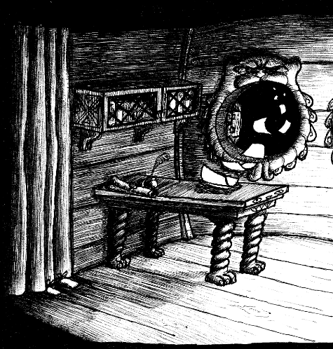 Vad var det då som fick kapten Kasr, mannen som ensam dödade femton motståndare i luftbataljen ovan Mand El-Massa att fly? Jo, en spökröst viskade plötsligt i hans öra, en lite torr och tråkig och försagd röst, som ingen annan hörde. Den viskade om domare Esther Klanlös själviska planer för luftskeppet, och den antydde att mycket mer kunde avslöjas om bara Kasr var villig att erbjuda ersättning i form av dörrar som slår igen av sig själva, självgungande gungstolar och en rad andra ting som spöken värdesätter högt. Rösten tillhörde självdöde Sut.