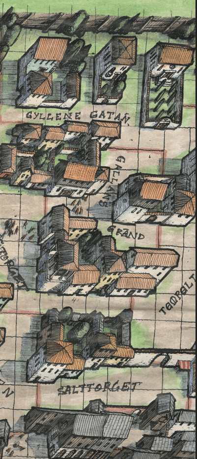 Läxan från detta experiment var – det som alla ni andra redan visste (varför stoppade ni mig inte?) – att fantasin ändå lägger till allt det som jag detaljerat försökte rita dit. Tecknandet bidrog alltså tyvärr mest med att dra ut på tiden mellan spelsessionerna. Men idag, nästan ett decennium efter jag inledde spelet, är jag trots allt glad att jag gjorde alla dessa bilder, att lägga upp helheten här på bloggen har gett mig en varm känsla av någon sorts gott dagsverke.
