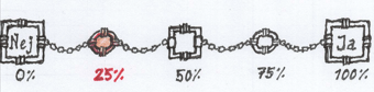 Procentsiffran under trådens olika steg visar hur stor sannolikhet det är att svaret blir ”Ja” på trådens fråga om man får händelsen ”Avsluta en tråd”. Om man slår under denna siffra blir svaret ”Ja”, annars ”Nej”. I exemplet ovan står jag på det rödfärgade steget och det är därmed 25% att tråden avslutas med ett ”Ja”
