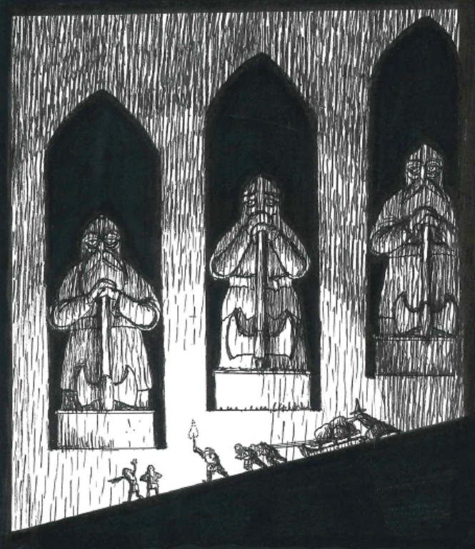 Stormunsel och nedfärden till de djupa strukturerna var den del av kampanjen som jag var mest peppad över. Jag gillar namnet ”de djupa strukturerna”, idén med att dvelverna avbryter högtiden och att man rör sig ner mot djupen genom en sedan sekel övergiven dvärgstad. Men som så många gånger tidigare blev det inte som jag trodde. Det första speltillfället väckte ingen motsvarande entusiasm hos spelarna. De stred med troll och de kämpade mot undervattensvarelser, men det var först när de smög in en liten rund sten under Arvia Stordotters sovfilt som spelet började vakna till liv. Ett ögonblick såg det ut som att deras ”bus” skulle ge riktigt allvarligt resultat då den oskyddade Arvia fick två reptilmannaspjut i ryggen, men skadan blev inte värre än att hon överlevde.