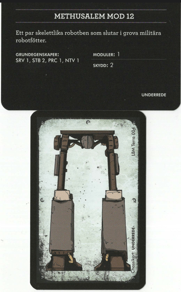 …Skulle jag kommit ihåg insiktskorten. Detta var den fjärde och sista Mutantkampanjen som vi spelade, och det var den vi hade svårast att engagera oss i. Främst berodde det på att vi tyckte det var svårt att identifiera oss med våra robot-rollpersoner. Vi har pratat om det och av någon anledning tyckte vi det var svårare att sätta sig in i hur en robot tänker än i hur ett muterat djur tänker. Insiktskorten glömde vi ofta bort vilket var synd. Idén är kul och om vi bara hade skärpt oss och kommit ihåg dem hade korten hjälpt oss att få liv i rollspelandet.