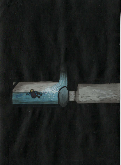 Ett alternativ till att knuffa undan stenblocket är alltså att vänta tills skattkammaren är vattenfylld och sedan simma upp till den underjordiska floden då man inte längre måste kämpa mot strömmen. (Ber om ursäkt för den undermåliga skanningen, får ta en kurs i det en vacker dag.)
