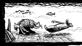 Innan mina äventyrare lämnade Faltrax fick jag en händelse som var positiv för den döde kapten Krooders dotter Tess (Gratify + A representative). Det visar sig att Tess söks upp av en representant för stadens råd. Under fladdrande fanor och med en fanfar av dånande pukor och blarriga trumpeter ställer sig representanten på tå och lyckas behänga den rodnande Tess med en medalj i form av en försilvrad snäcka för hennes modiga försök att hämnas sin far och straffa handelsflottans fiende nummer ett – piraterna på Falkön.