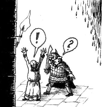 Det börjar inte bra. Zilvar och hans män måste ha stärkt sig lite väl mycket inför resan för jag slog mycket dåligt. Podgol, en av Zilvars män tar täten i full galopp: -”Ha haa!” Skrålar Zilvar: -”Se på Podgol! Se så han rider! Han ska visa oss en genväg! Wohoo!” Men mina tärningar avslöjade att vägen som Podgol valde, ni vet den där som leder genom Möcklarepasset, blev en senväg. Passet hade rasat igen vid senaste stormen och de fick vända åter. Vid aftonen var de tillbaka där de började, på ett värdshus i Faltrax. Zilvar stirrade ner i sitt glas: -”Den där förbannade Podgol och hans förbannade genvägar. Alltid chansa, alltid gena, alltid fuska.”